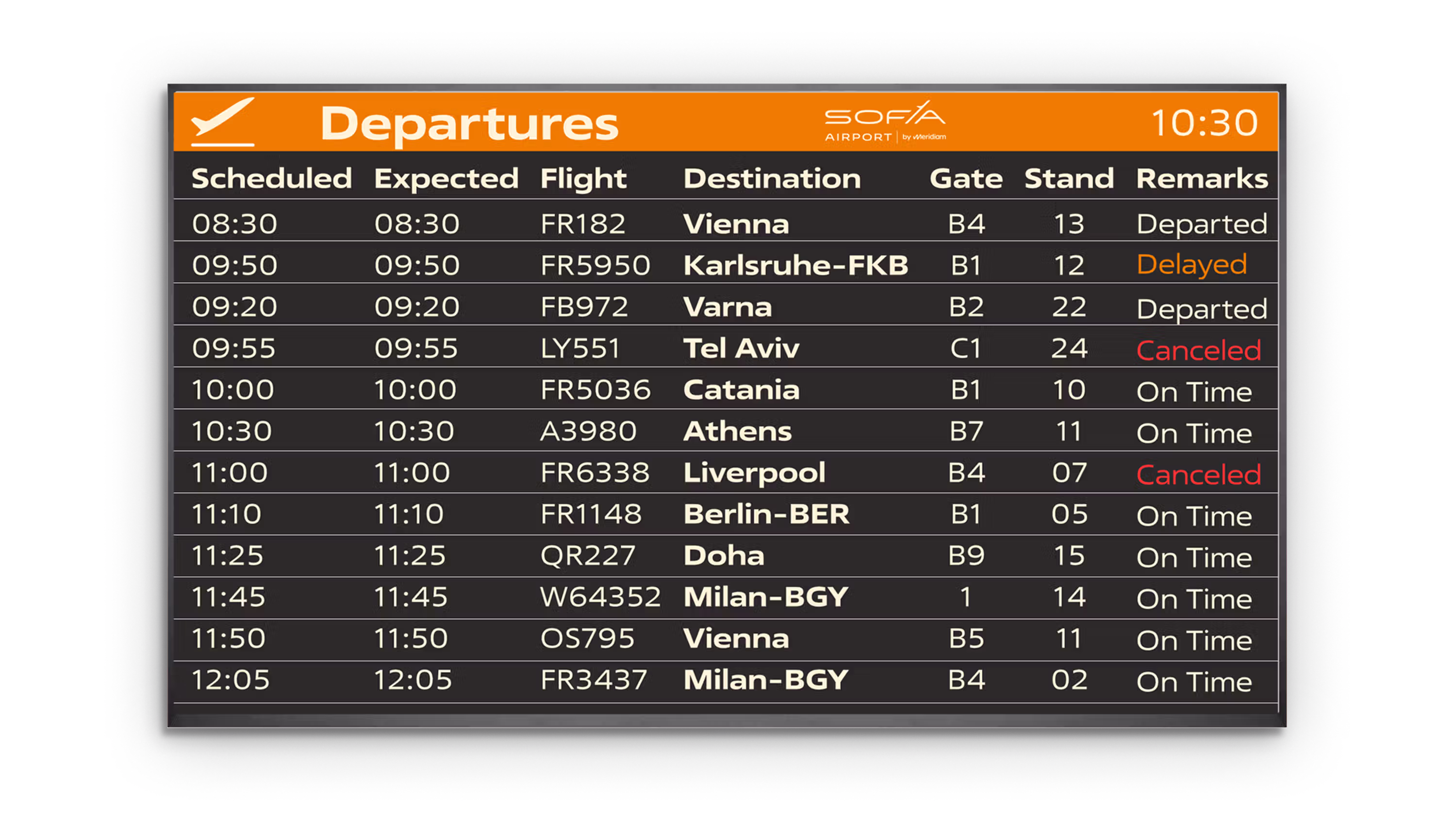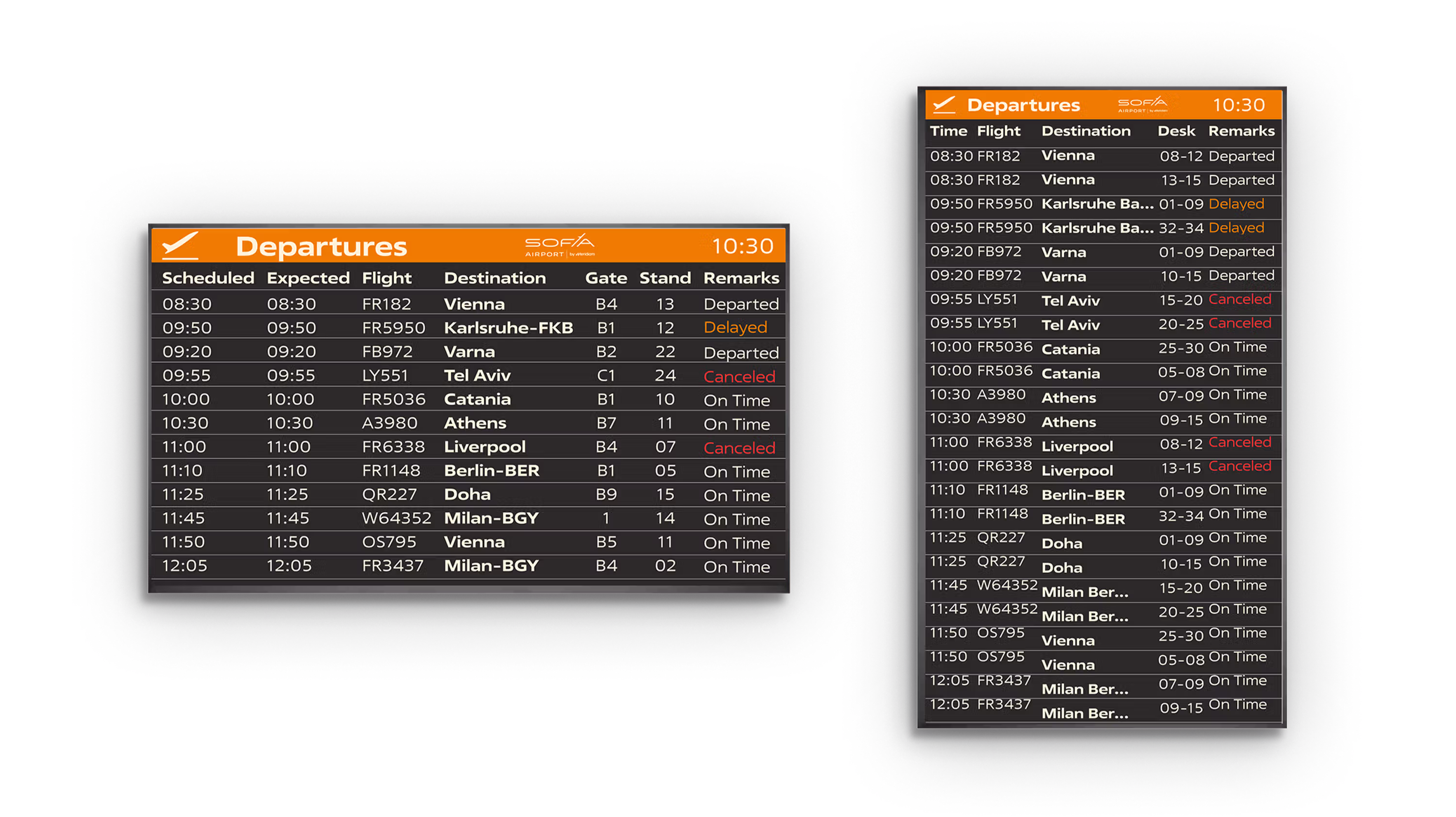 Sofia Airport’s FIDS is a real-time operational product. It must stay readable at distance, handle frequent changes, and remain consistent across multiple screen formats and locations.